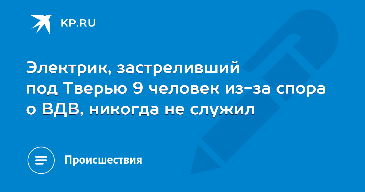 Кстати, позднее стало известно, что электрик, застреливший под Тверью 9 человек из-за спора о ВДВ, никогда не служил (подробности)